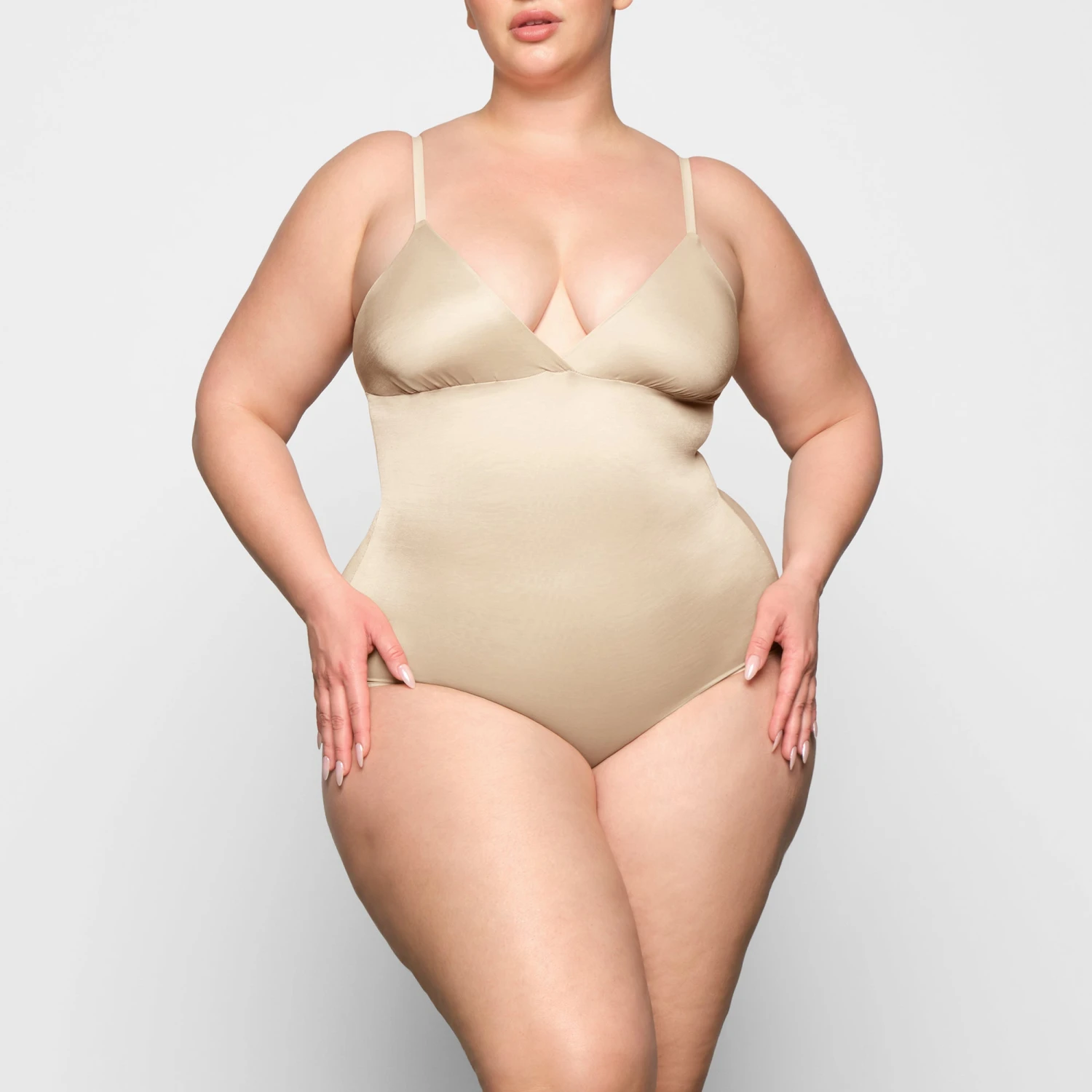 BARELY THERE BODYSUIT BRIEF W/ SNAPS | SAND
