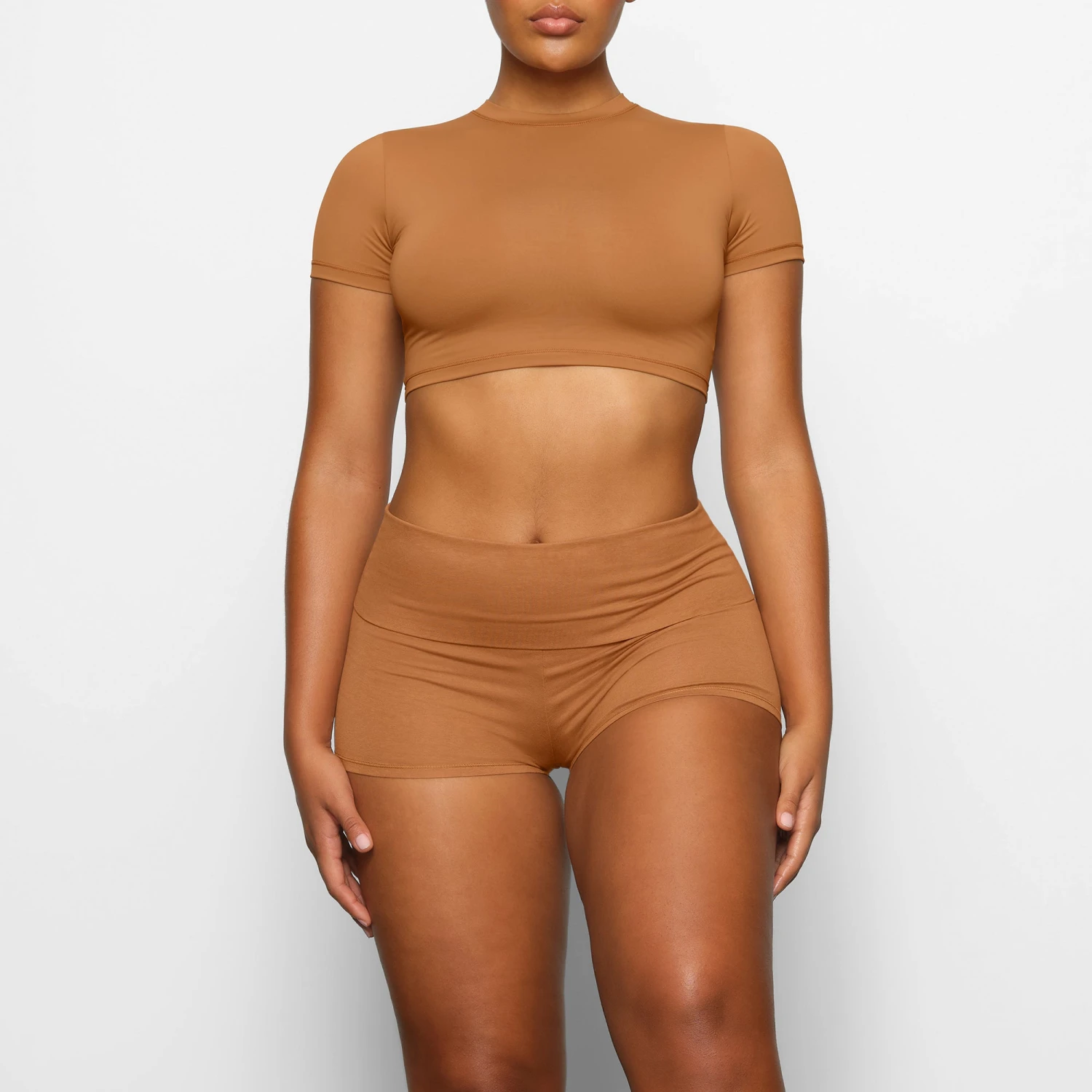 high or low on the hips for an effortless, post-swim look. Features a fold-over waistband. Fits true to size.