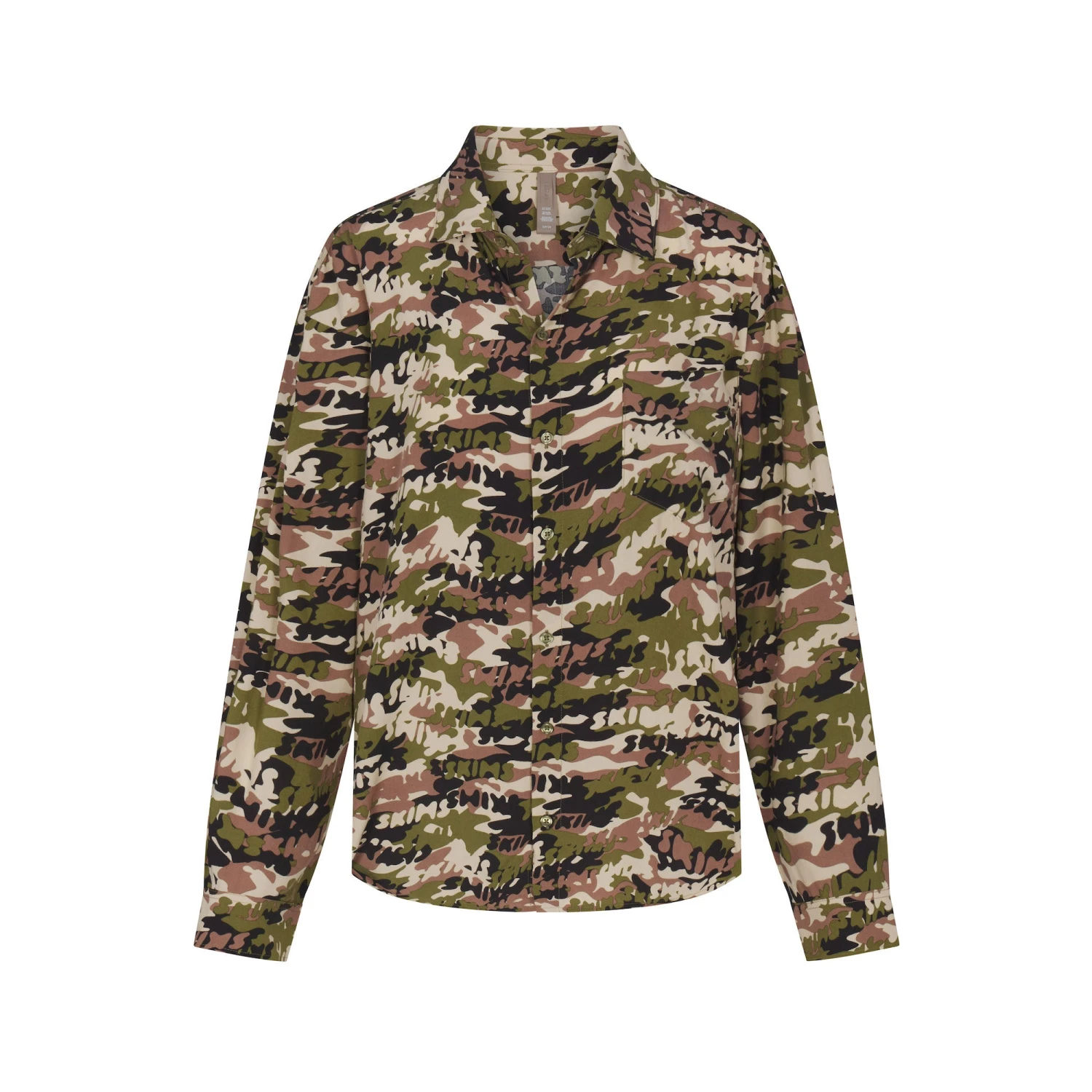 is a staple for effortless styling, to and from the beach, pool, and beyond. Features a center front button-up closure, chest patch pocket, and notch collar. True to size for an oversized fit.
