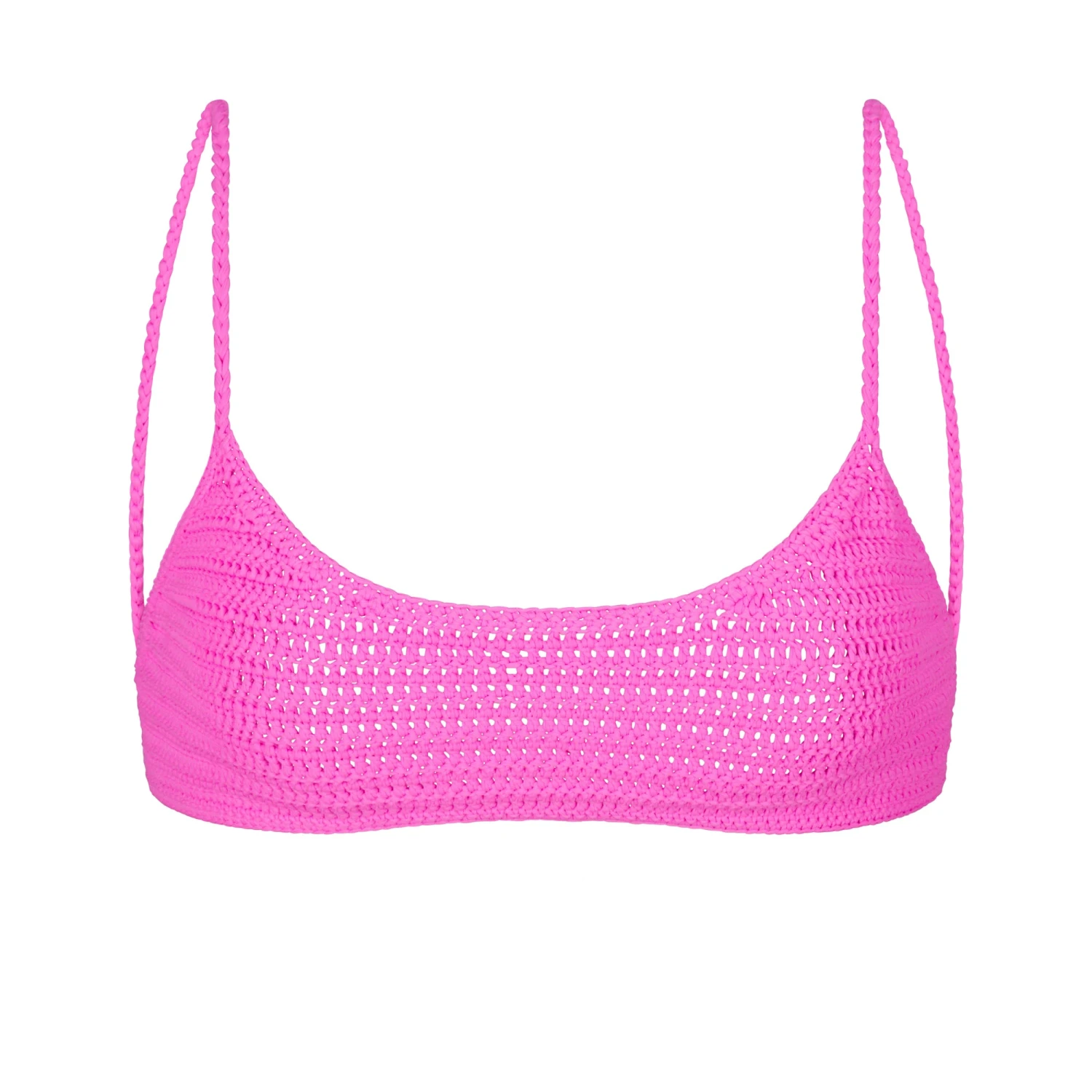 that’s guaranteed to stand out. Features a soft, stretchy feel, a scoop front neckline, non-adjustable shoulder straps, tie back for adjustability, and micro coverage. Make it the ultimate set with a Crochet