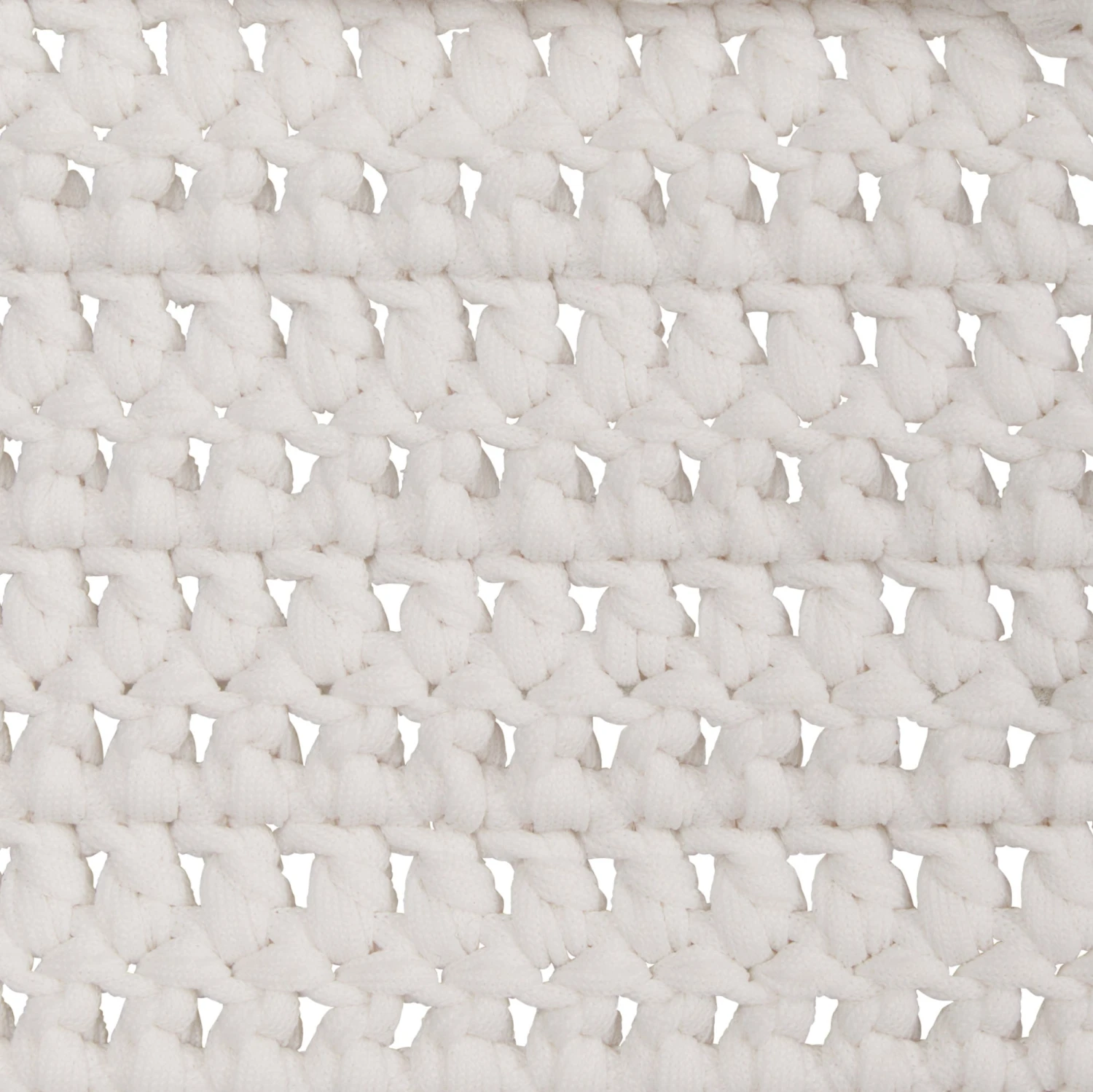 material hand-knitted together with an elevated crochet fabric for a cheeky tie