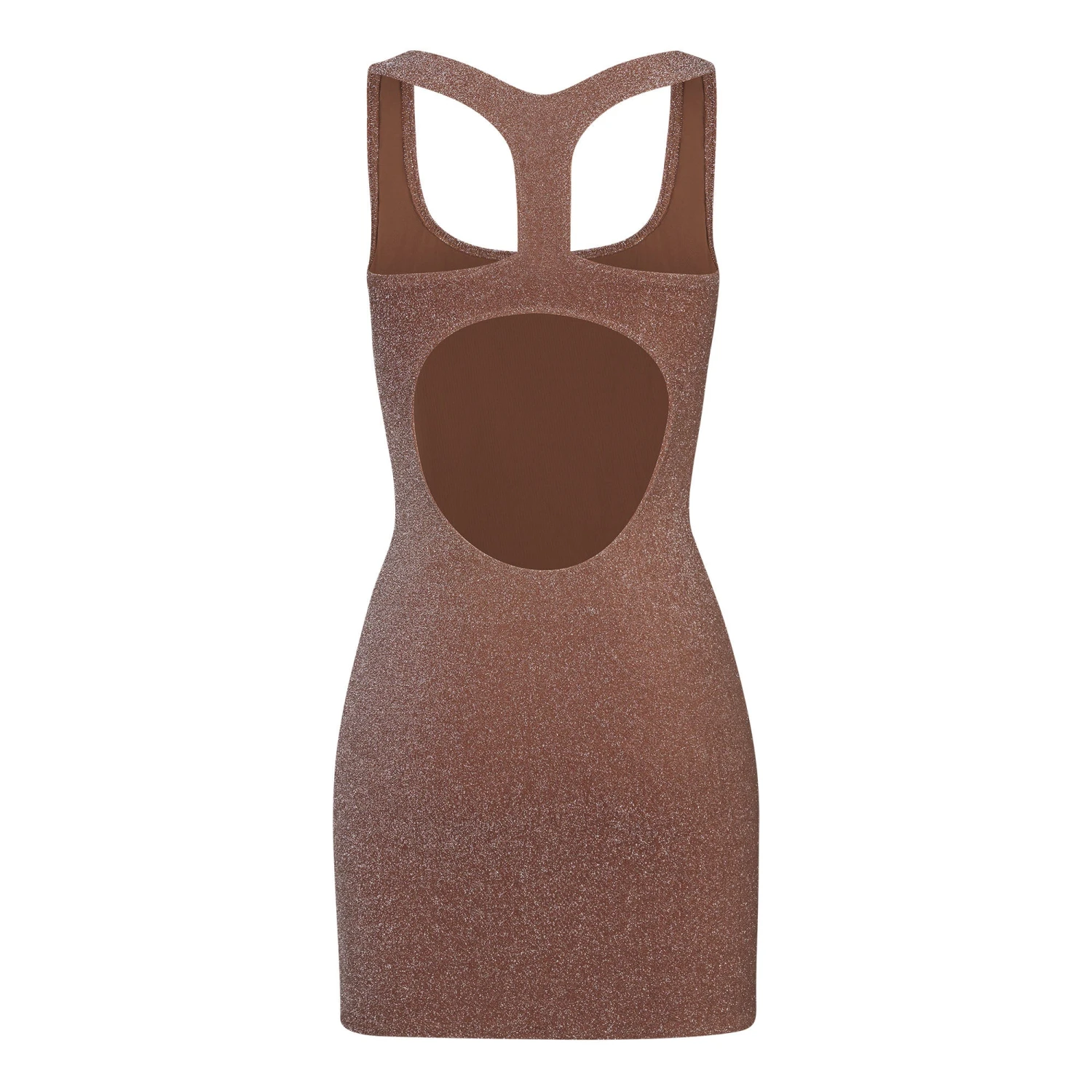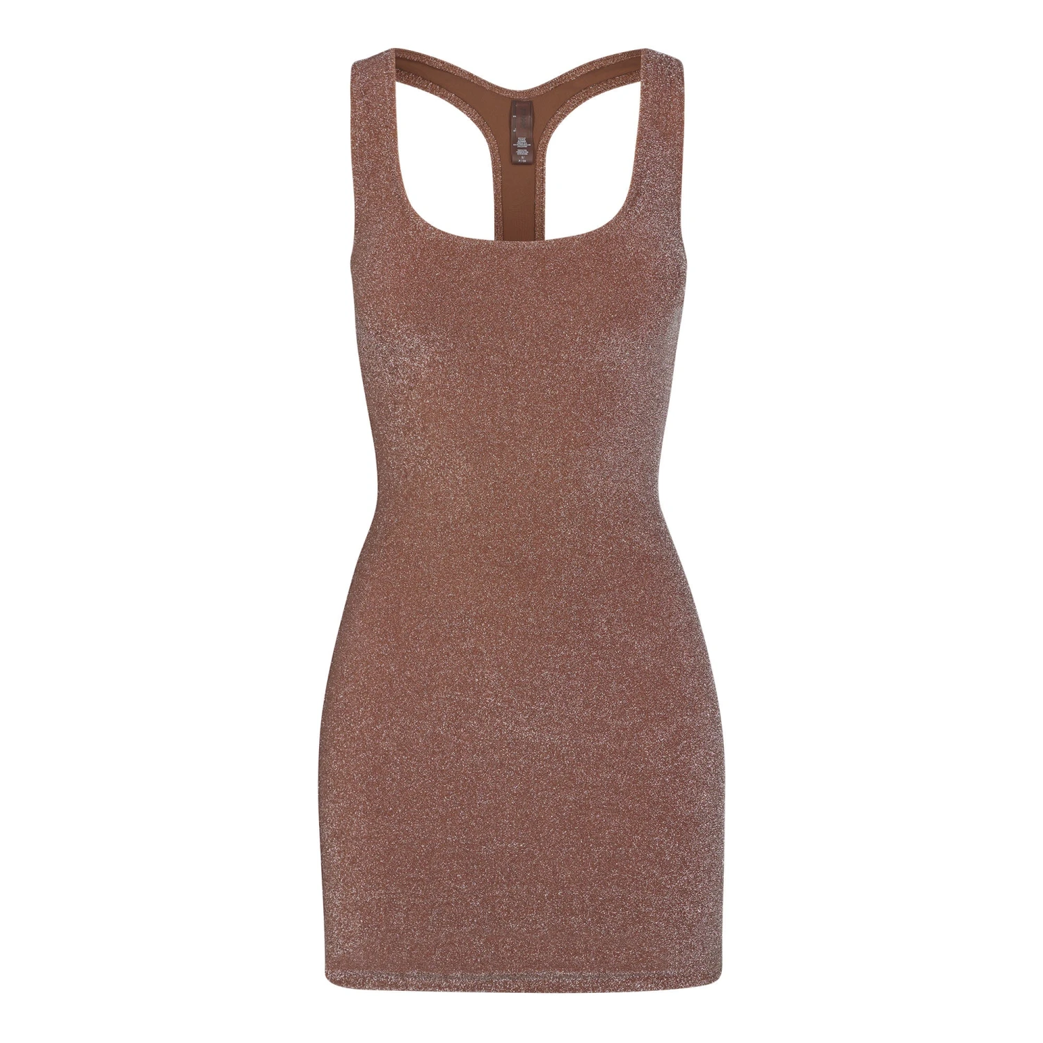 . Features scoop neckline, racerback straps with back cut-out, and recycled polyester lining. Fits true to size.