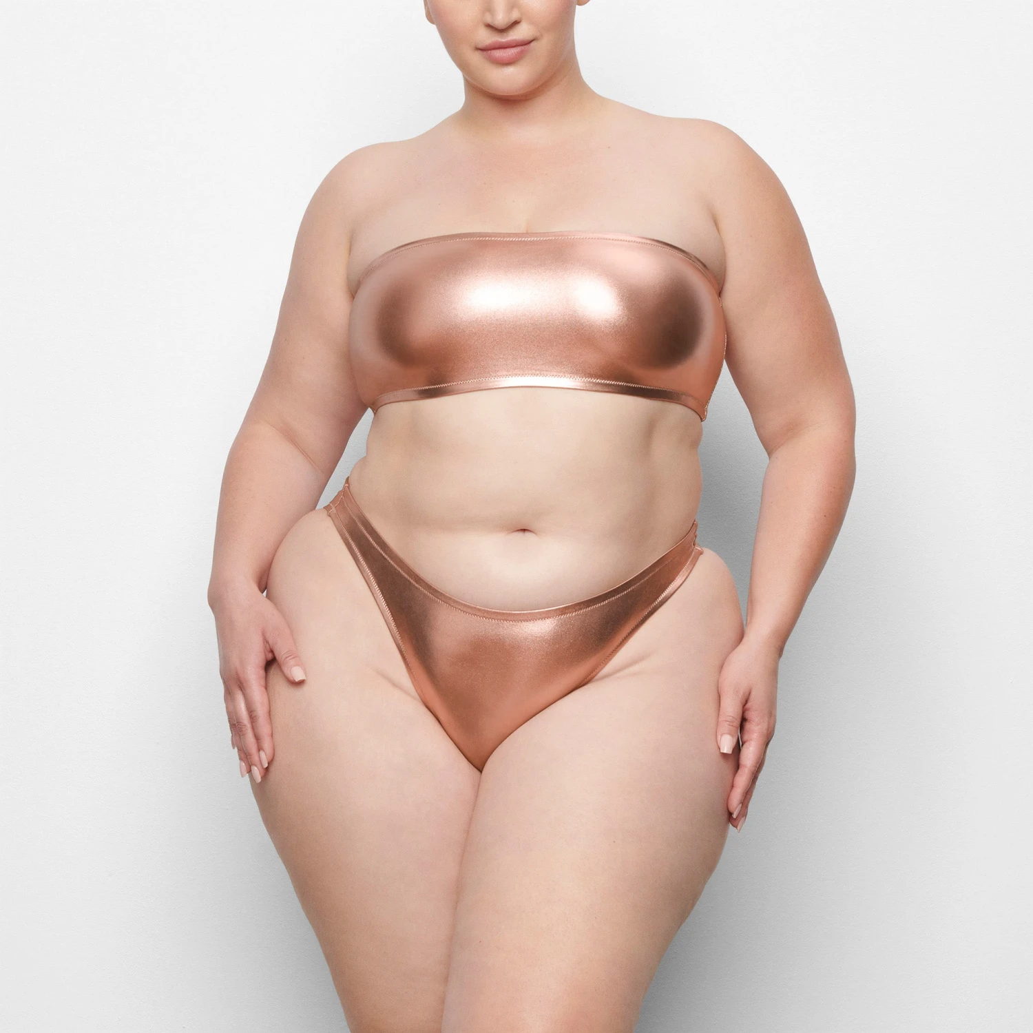 . With a dipped front and fuller back coverage, this style pairs perfectly with the Mock Neck Swim Tank, Triangle Top, or Bandeau. Fits true to size.