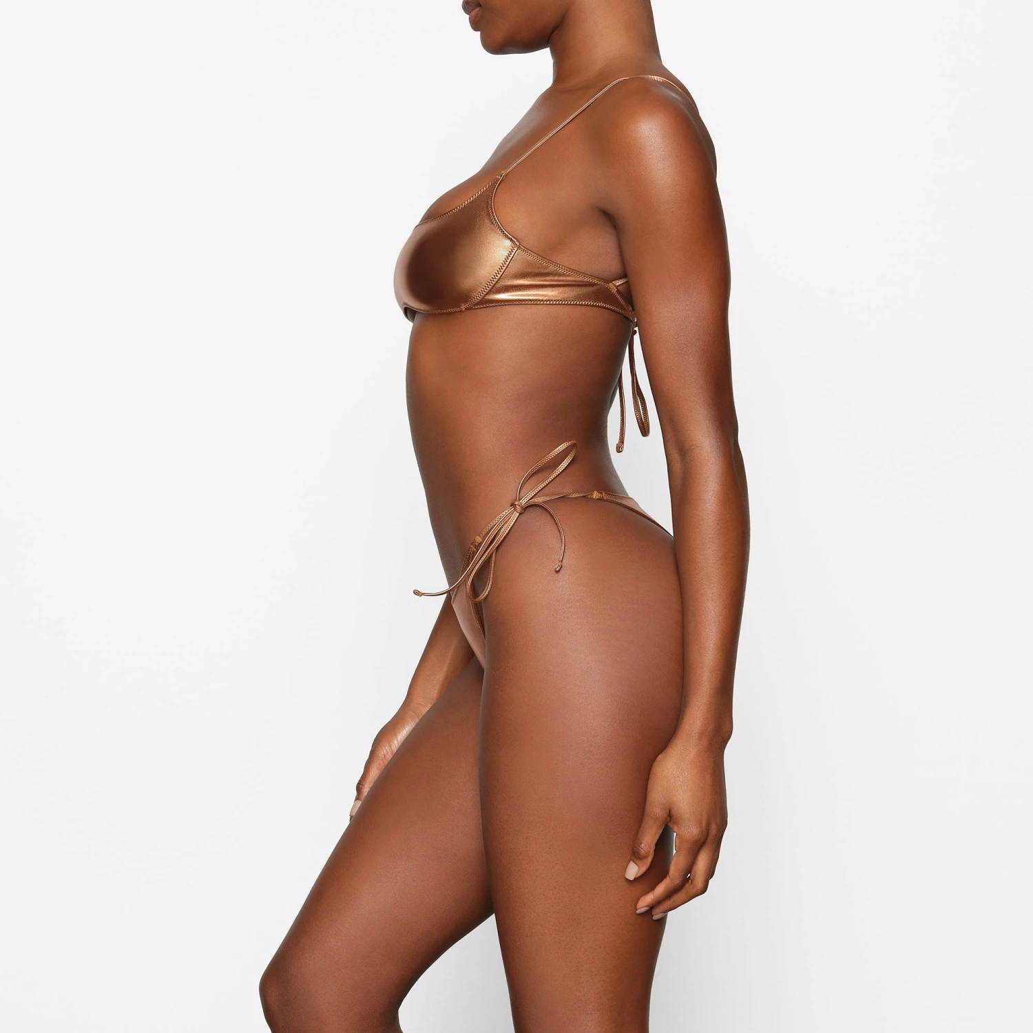 is a must-have. Features thin straps, an adjustable tie-back, and micro coverage. Match it to your favorite Metallic