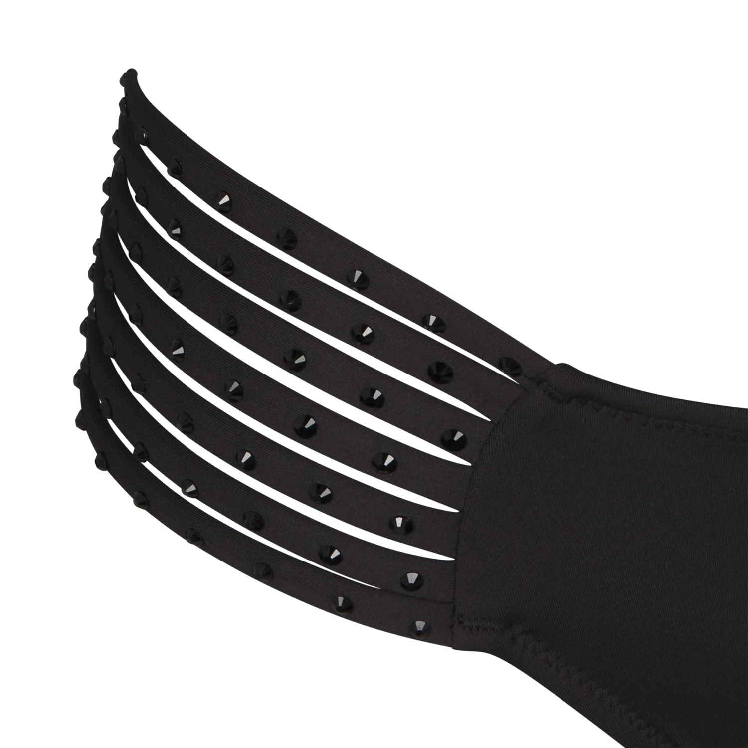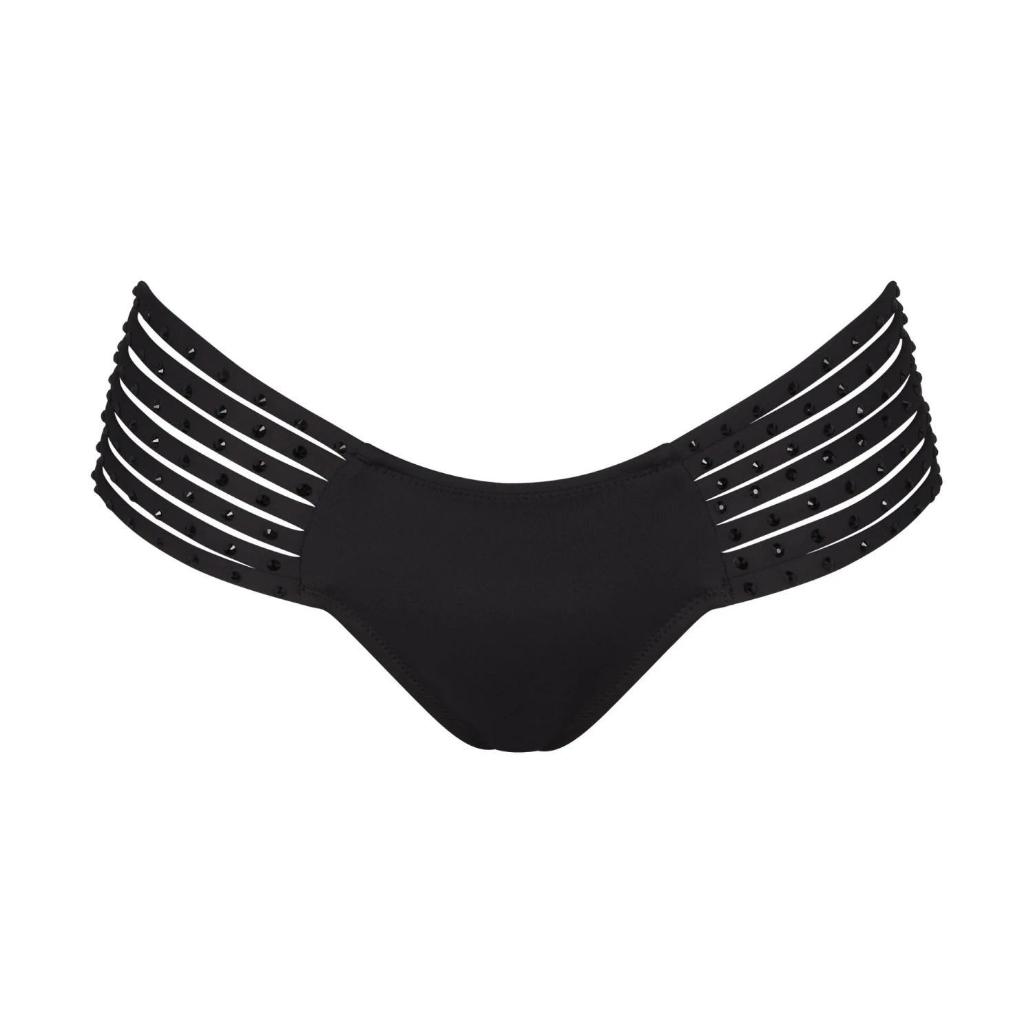 has strappy sides adorned with tonal rhinestones for a show-stopping look. Features cheeky back coverage. Make it a set with the coordinating