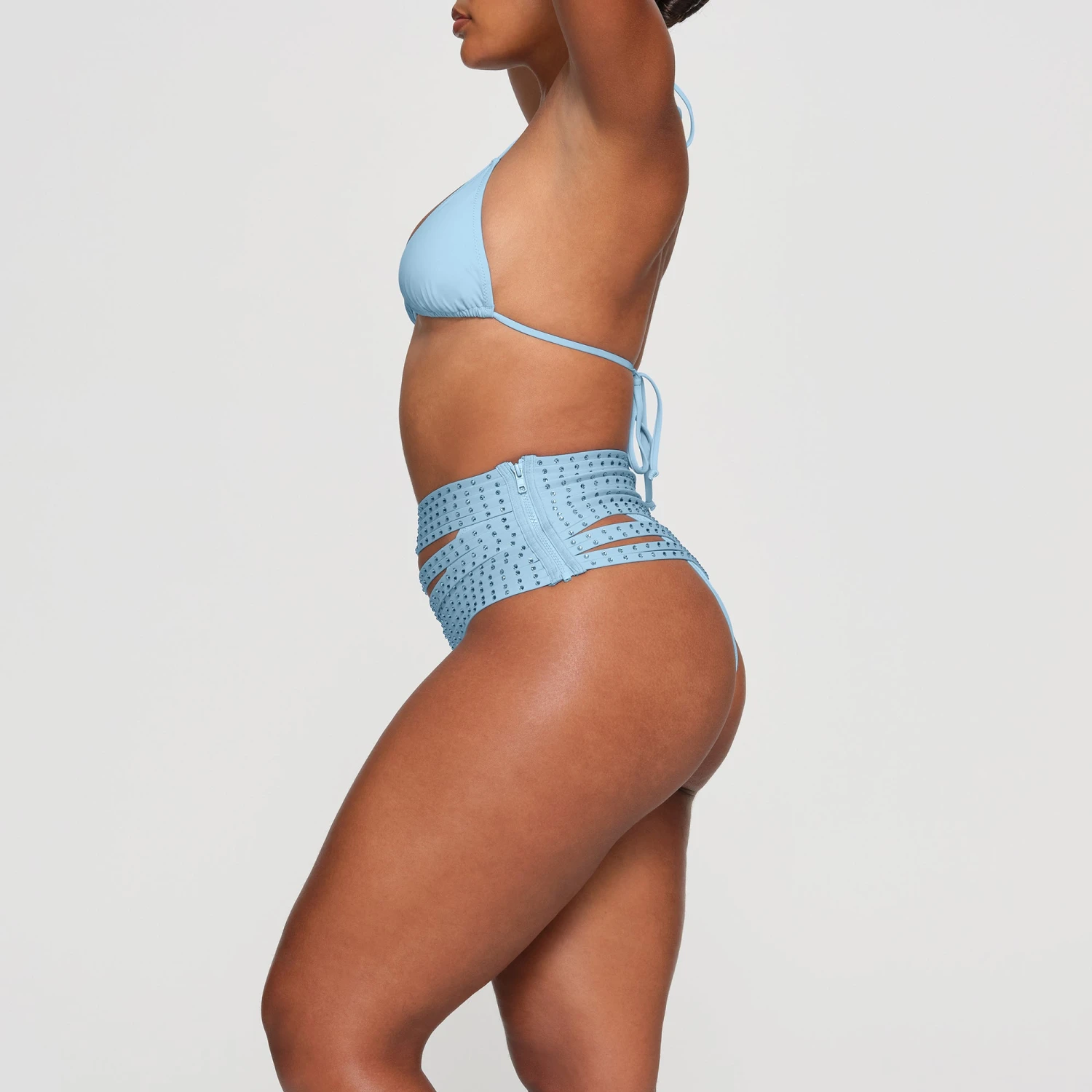 is a styling must-have for your hottest days by the water. Features tonal rhinestone details and a side zip closure. Pair with your favorite