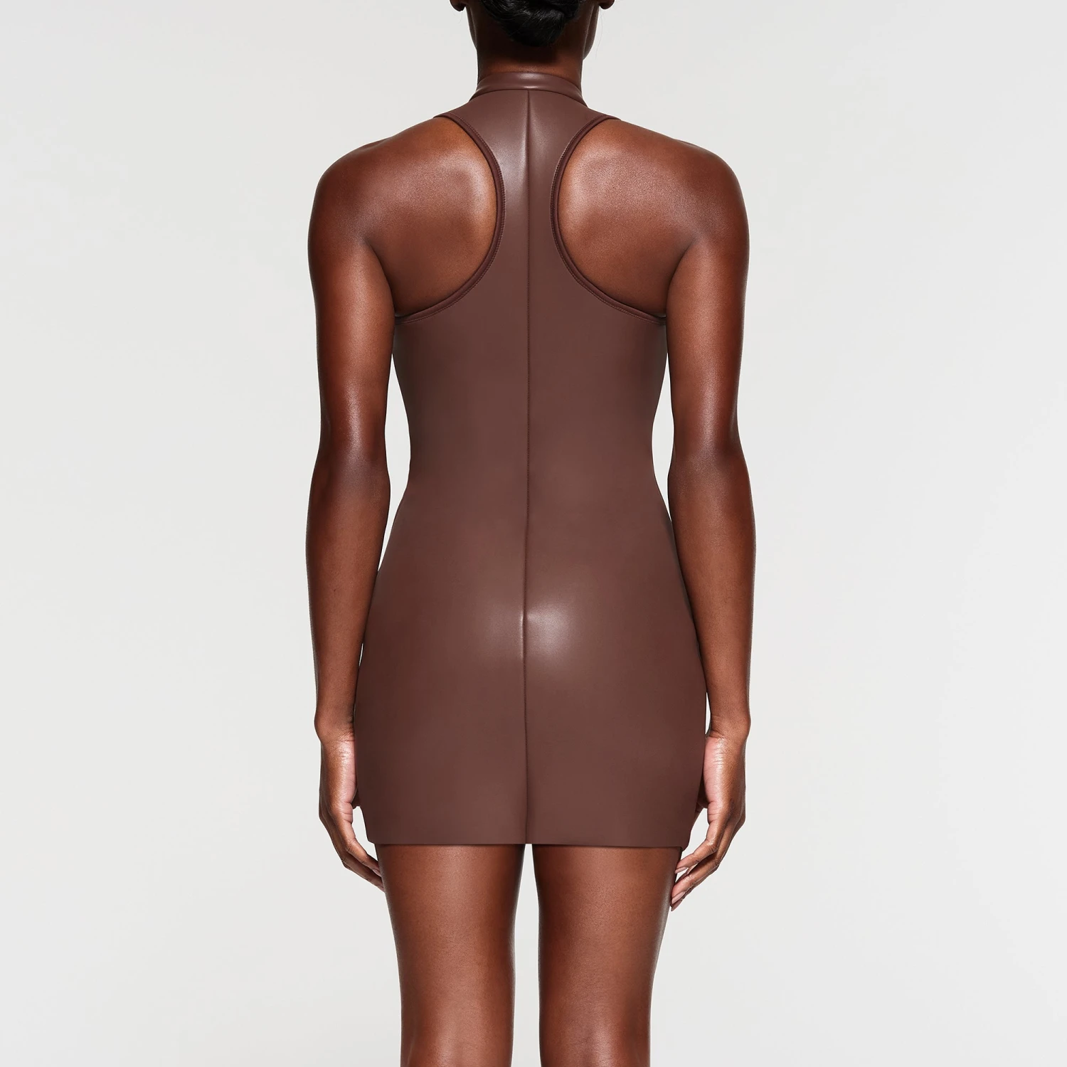 RUBBERIZED SCUBA SWIM MOCK NECK DRESS | COCOA