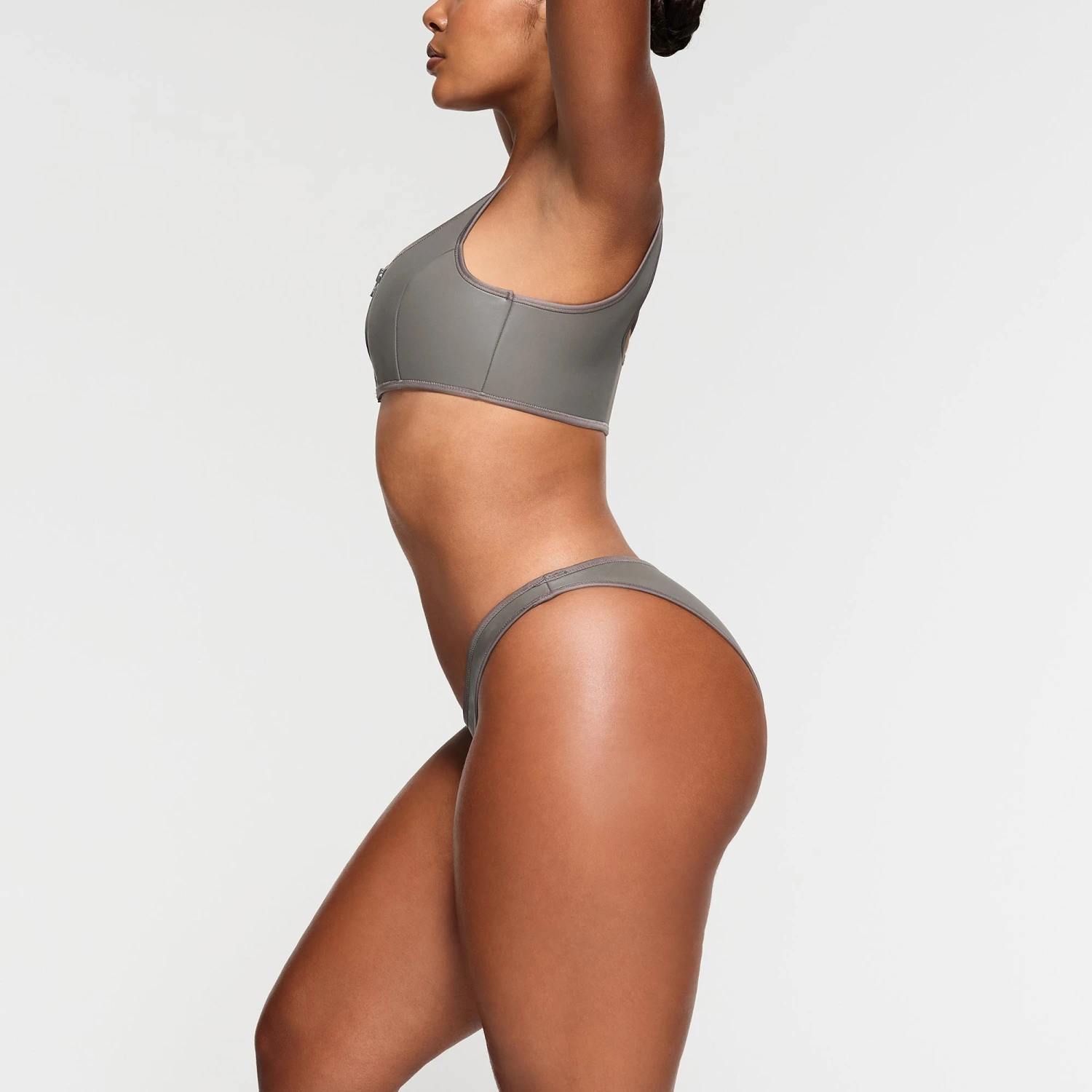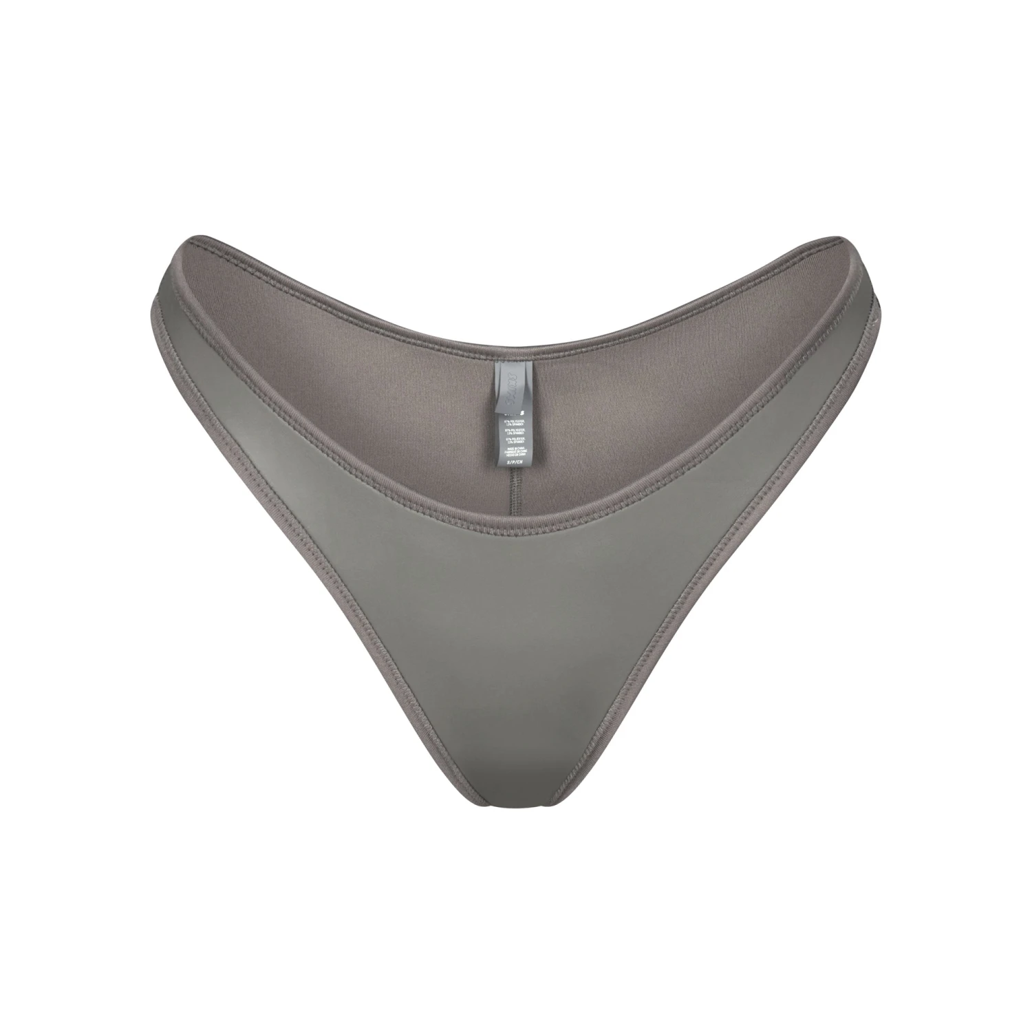 is made of a slick neoprene fabric that gives a sexy wet look. Features cheeky back coverage. Make it a set with the coordinating Scuba
