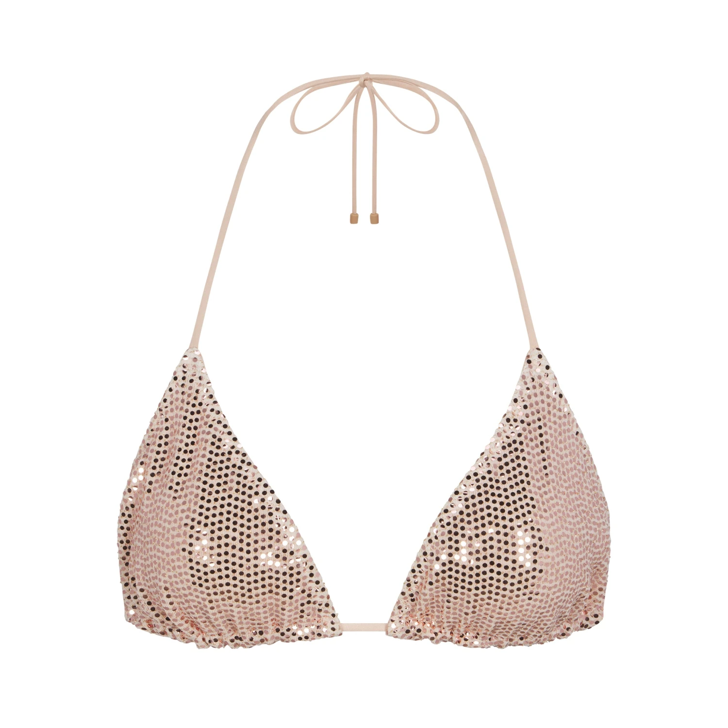 . Features neck and back ties with branded metal ends so you can adjust to your perfect fit. Complete your swim look with the coordinating sequin