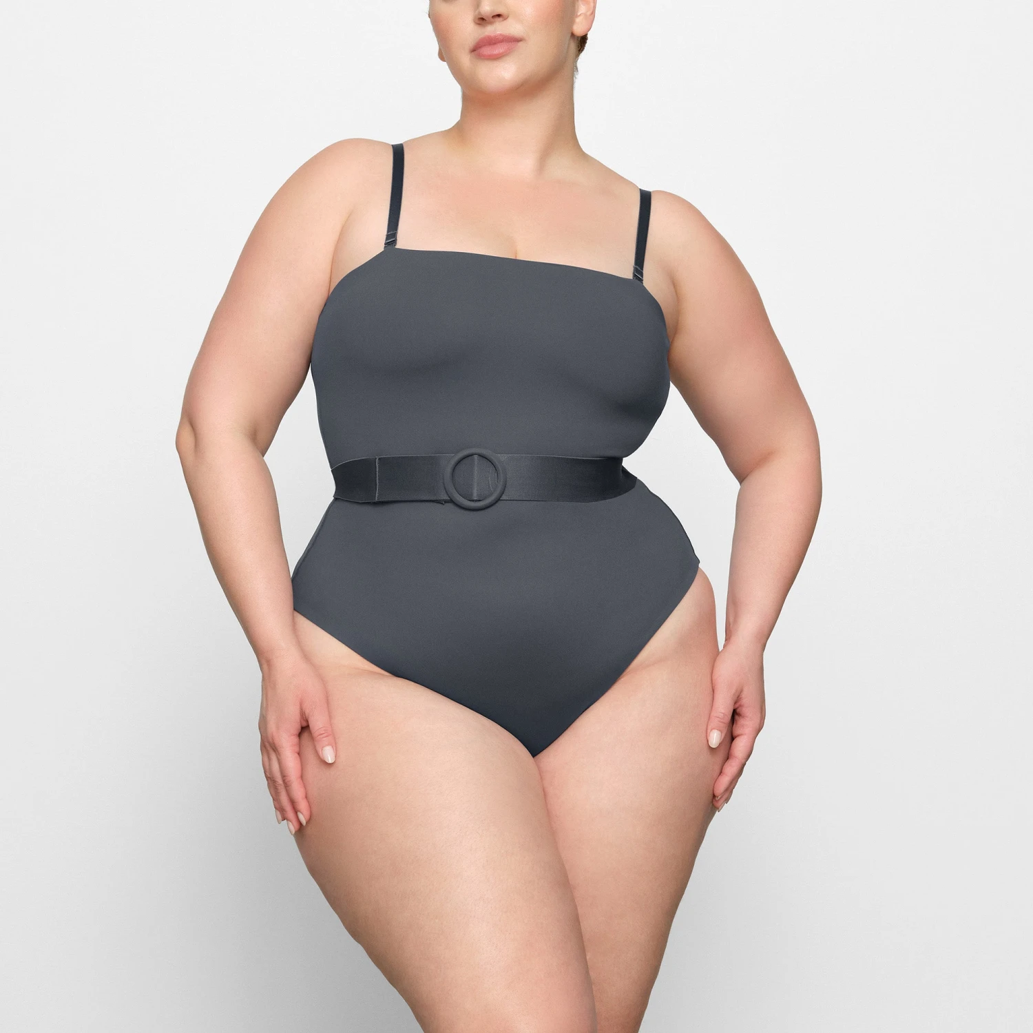 . Features removable straps for extra support and an elastic belt along the waist for a cinching effect. Fits true to size.
