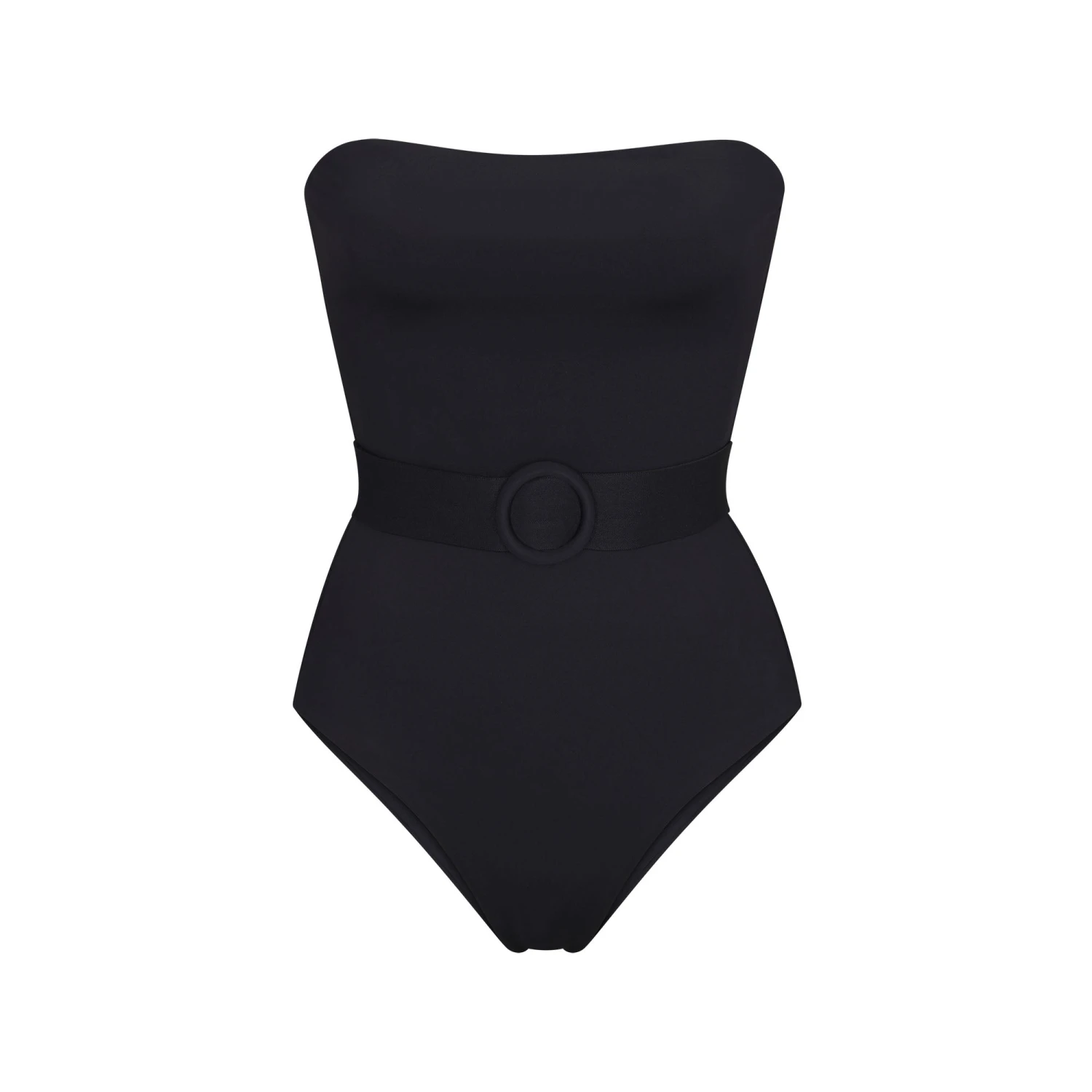 . Features removable straps for extra support and an elastic belt along the waist for a cinching effect. Fits true to size.
