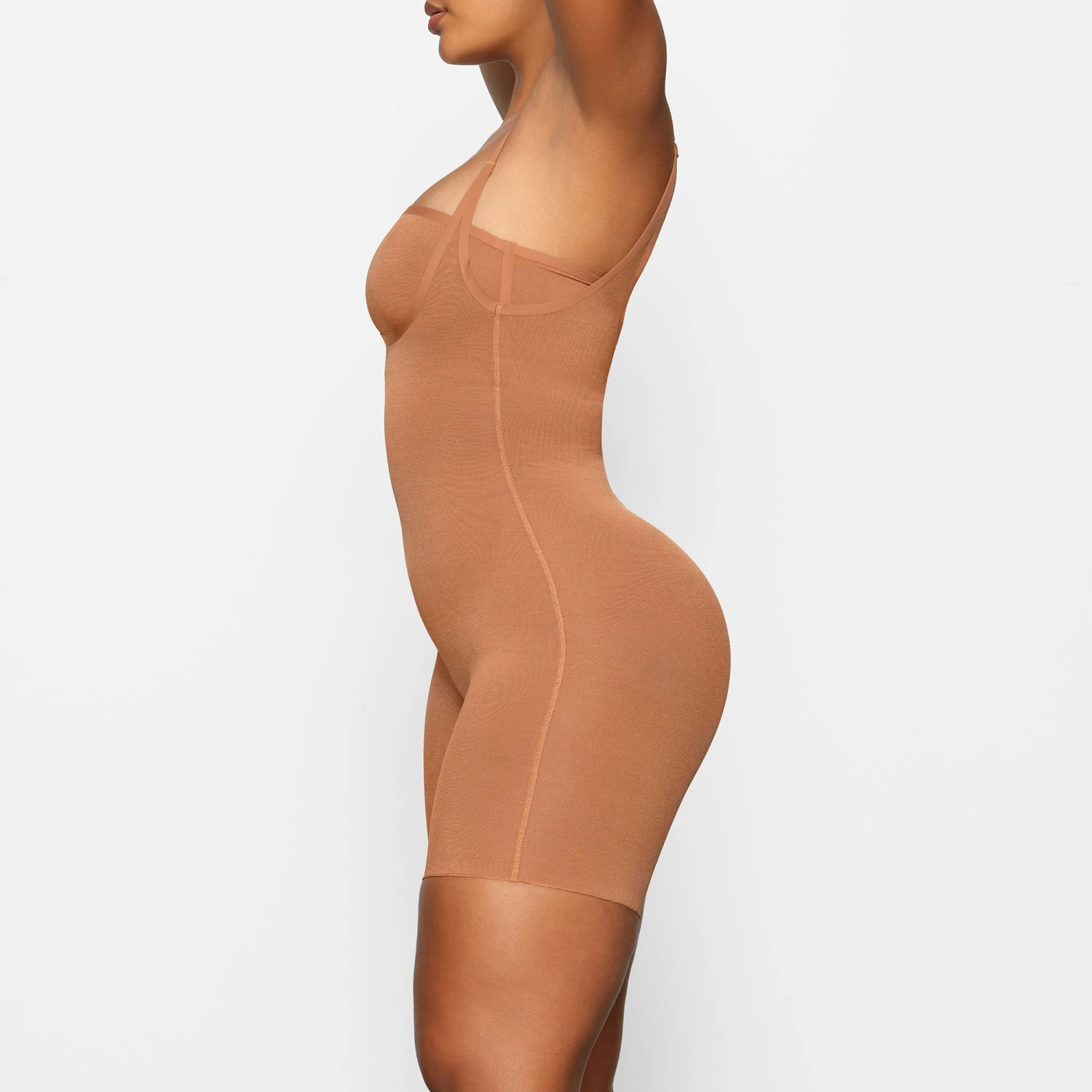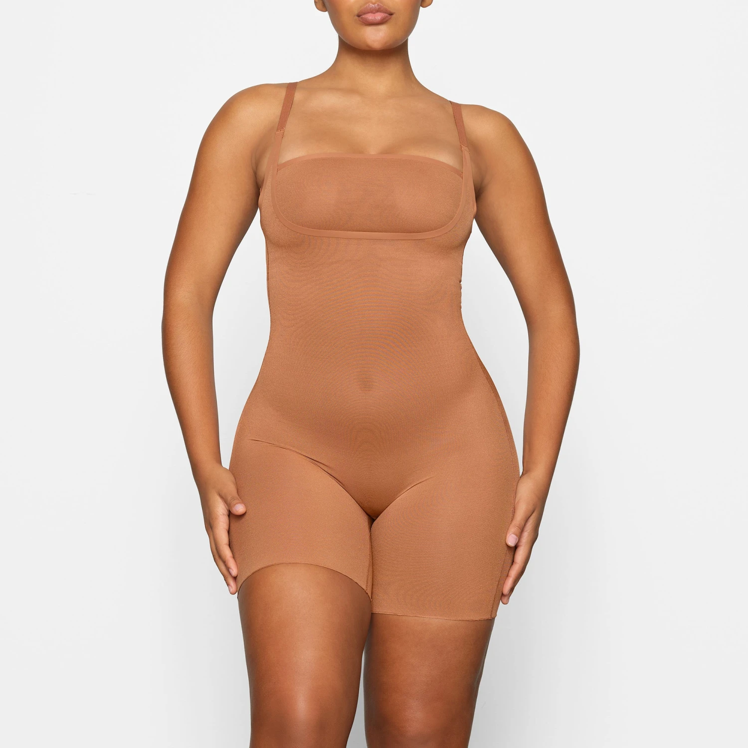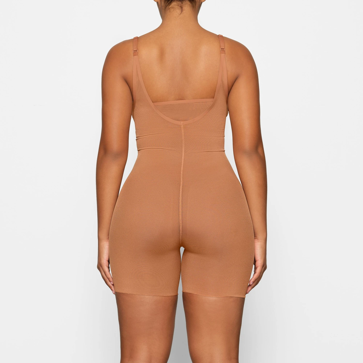 Invisible under everything, this sheer bodysuit holds in your core, smooths your upper thighs, and lifts and shapes your butt. Its silky construction and extra low back make this