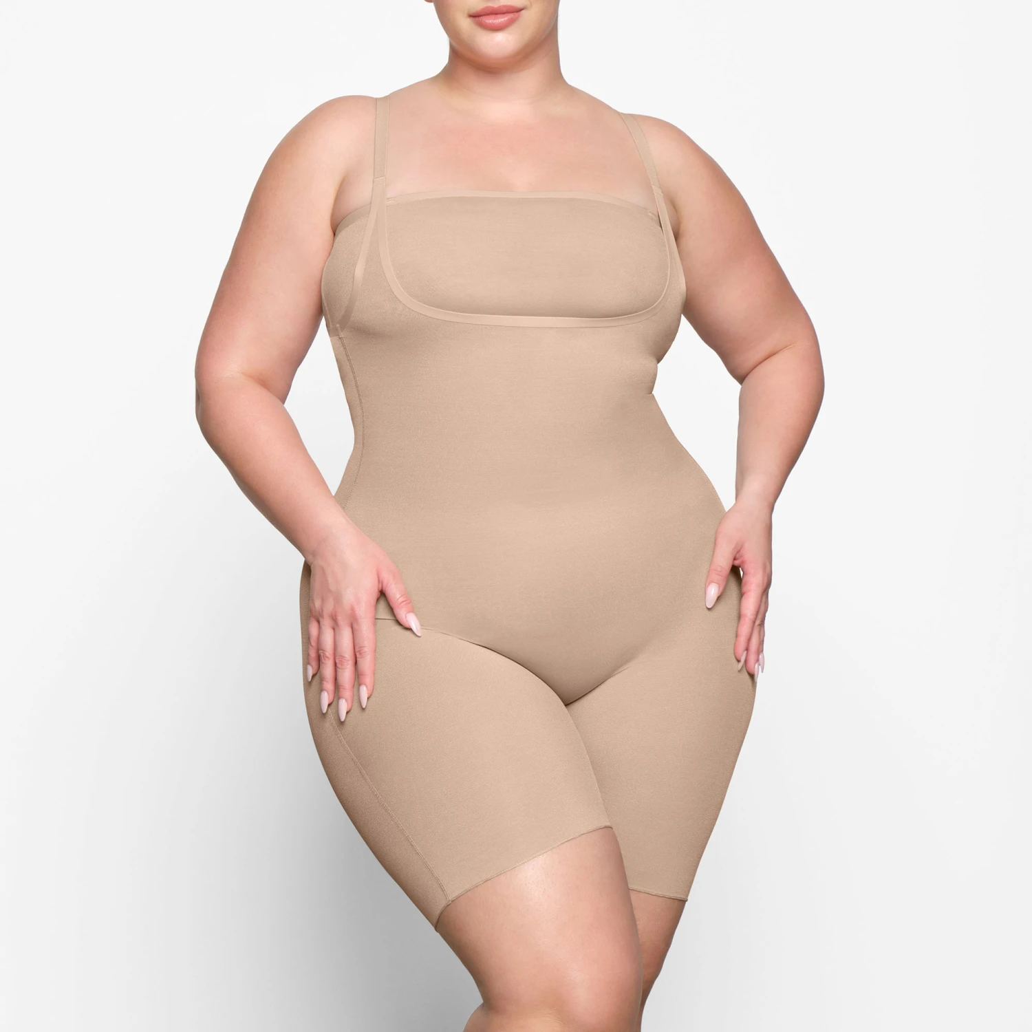 Invisible under everything, this sheer bodysuit holds in your core, smooths your upper thighs, and lifts and shapes your butt. Its silky construction and extra low back make this