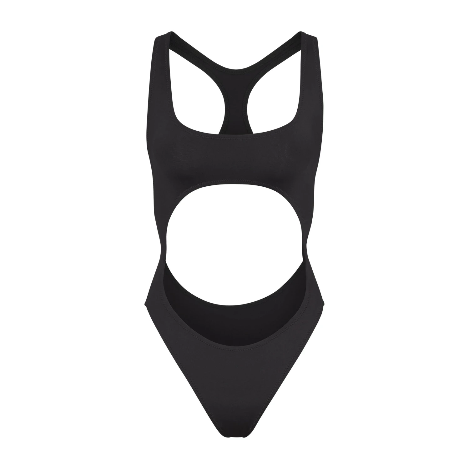 features an ultra-flattering scoop neckline and bold cut-outs. Fits true to size.