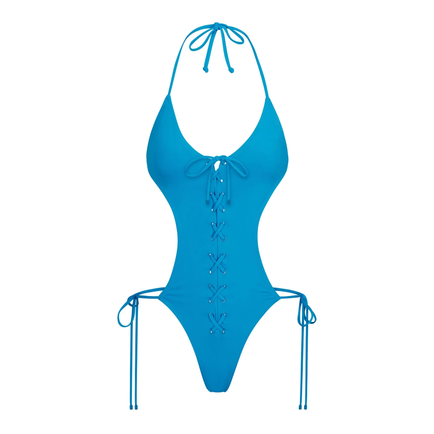was made to flatter and stand out. Features front lace-up details with eyelets and adjustable ties at the neck and center back for support. Size up for the best fit.