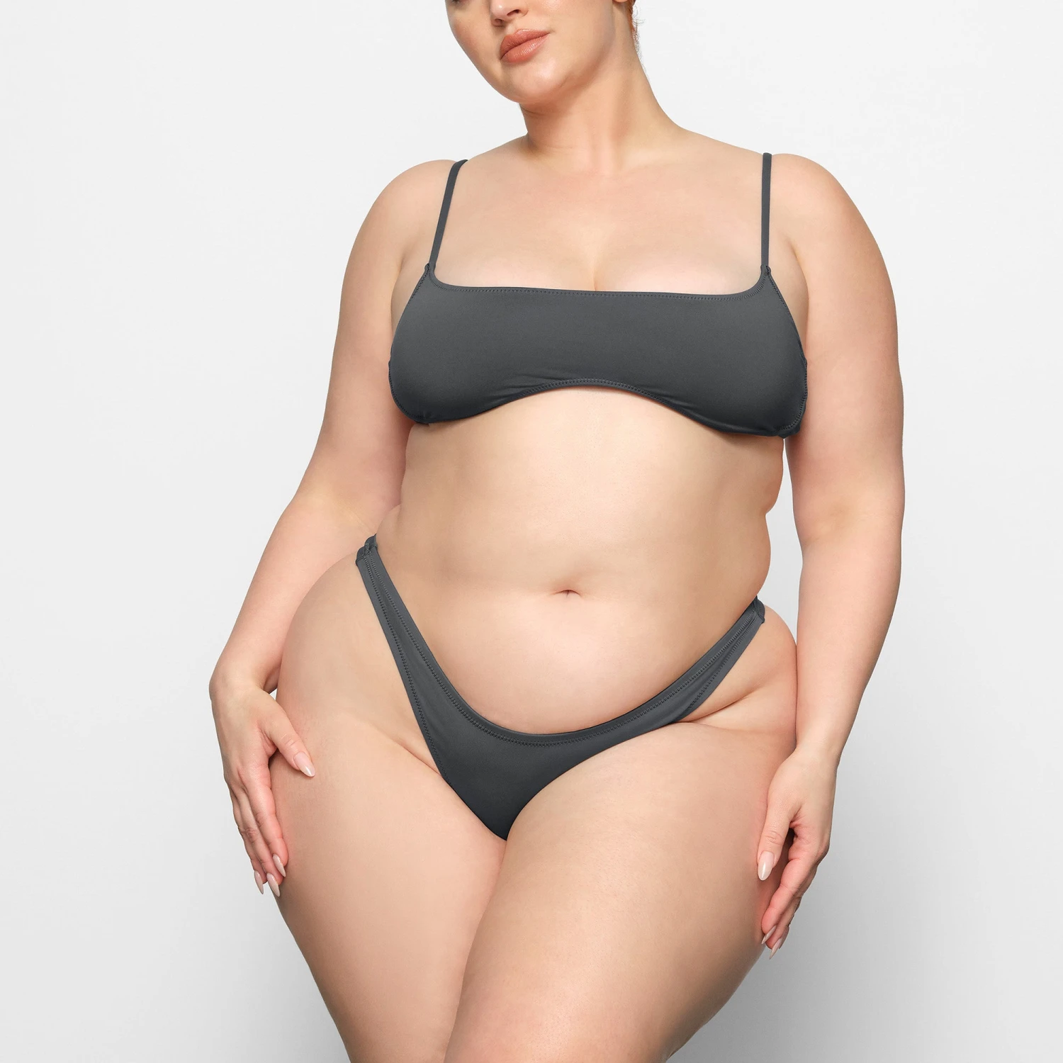 with an extremely dipped front and ultra-cheeky back. Wear it high on the hips for a sexy look. Pair with the Swim Micro Triangle Top. Fits true to size.