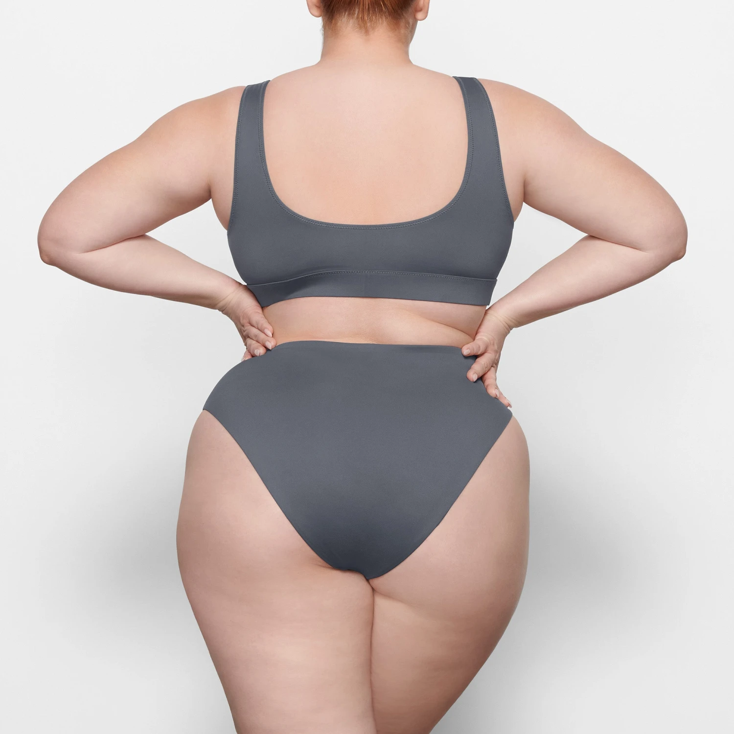 classic. Featuring medium back coverage and a mid-rise fit, this silhouette is perfect for added coverage on tummy and butt while featuring high-cut sides that elongate your legs. Fits true to size.
