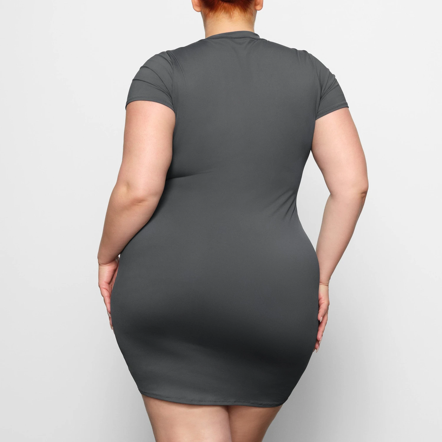 in the water and beyond. Features a high crew neckline and mini length with slightly longer back coverage. Fits true to size.