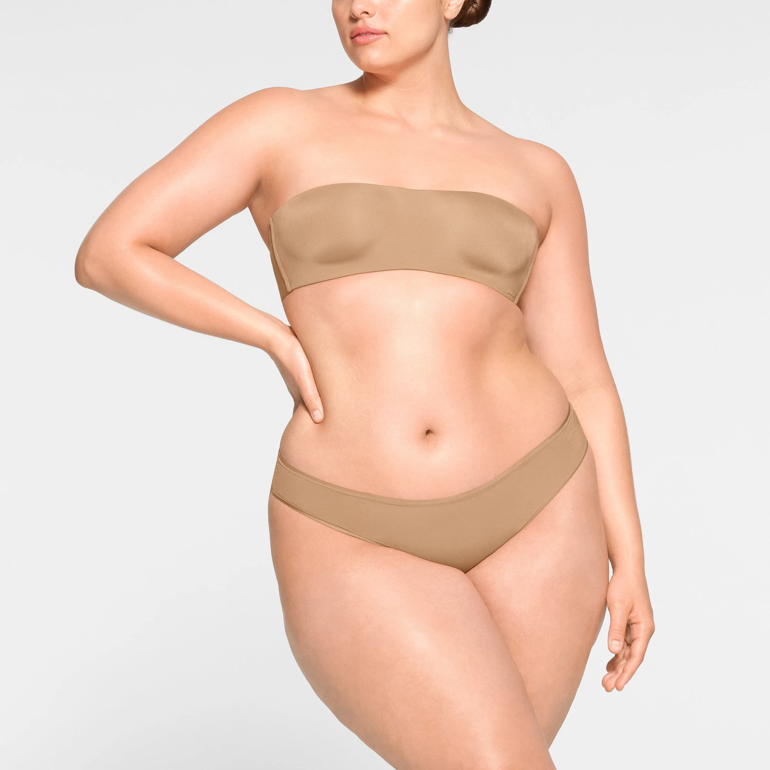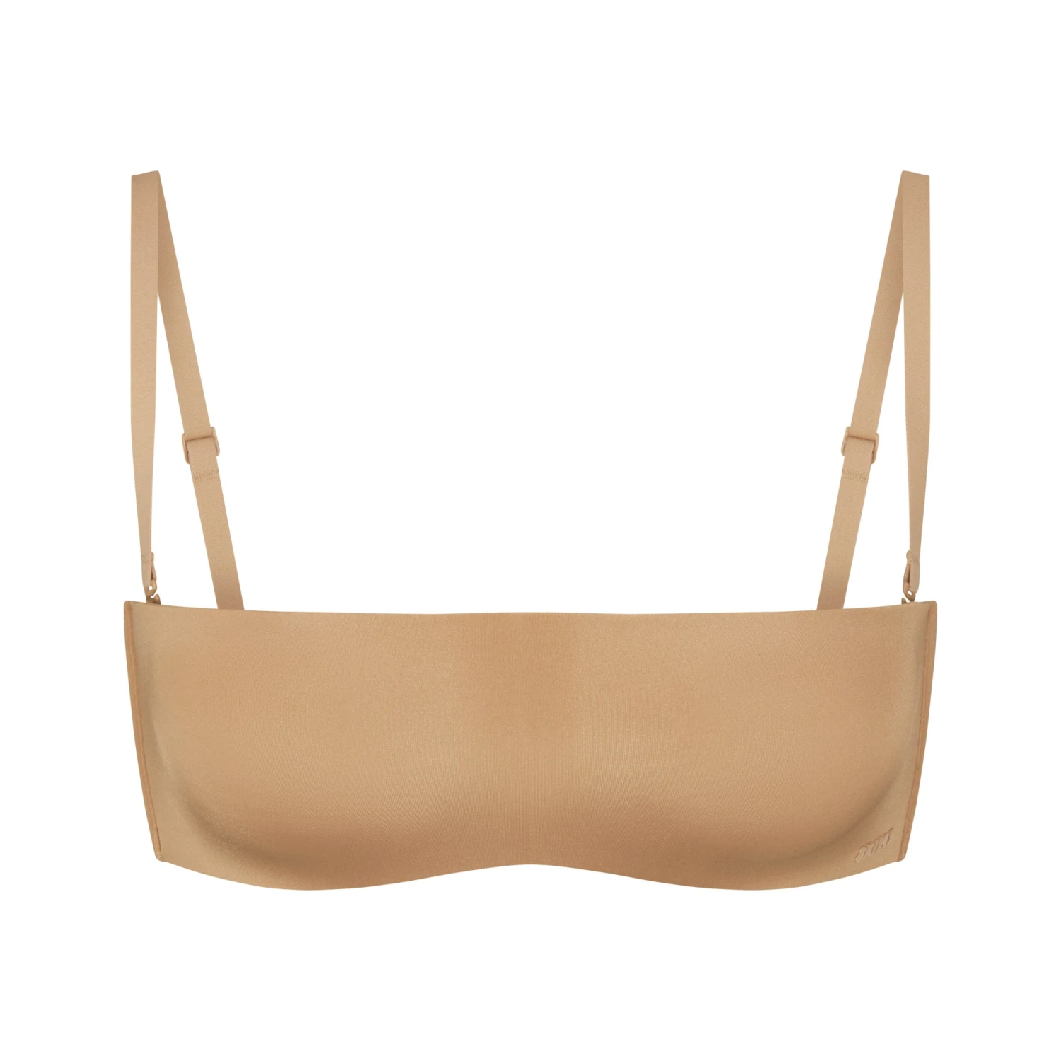 This ultra-comfortable strapless solution has lightly lined, lightweight foam pads that flatter your bust and wide wings that smooth your back. Features removable adjustable straps that can be worn multiple ways, a tonal silicone SKIMS logo on the front wing, and a hook and eye back closure. Fits true to your