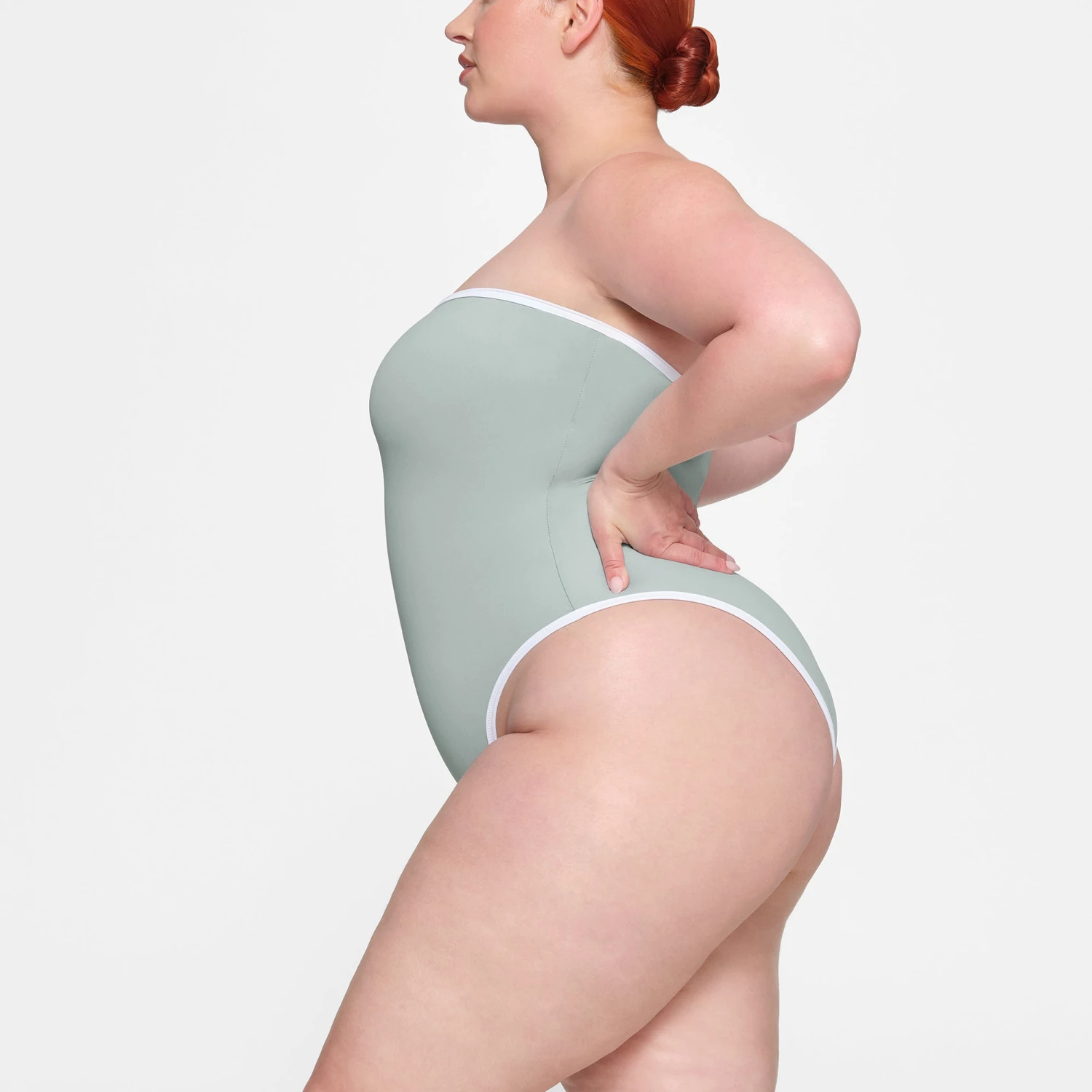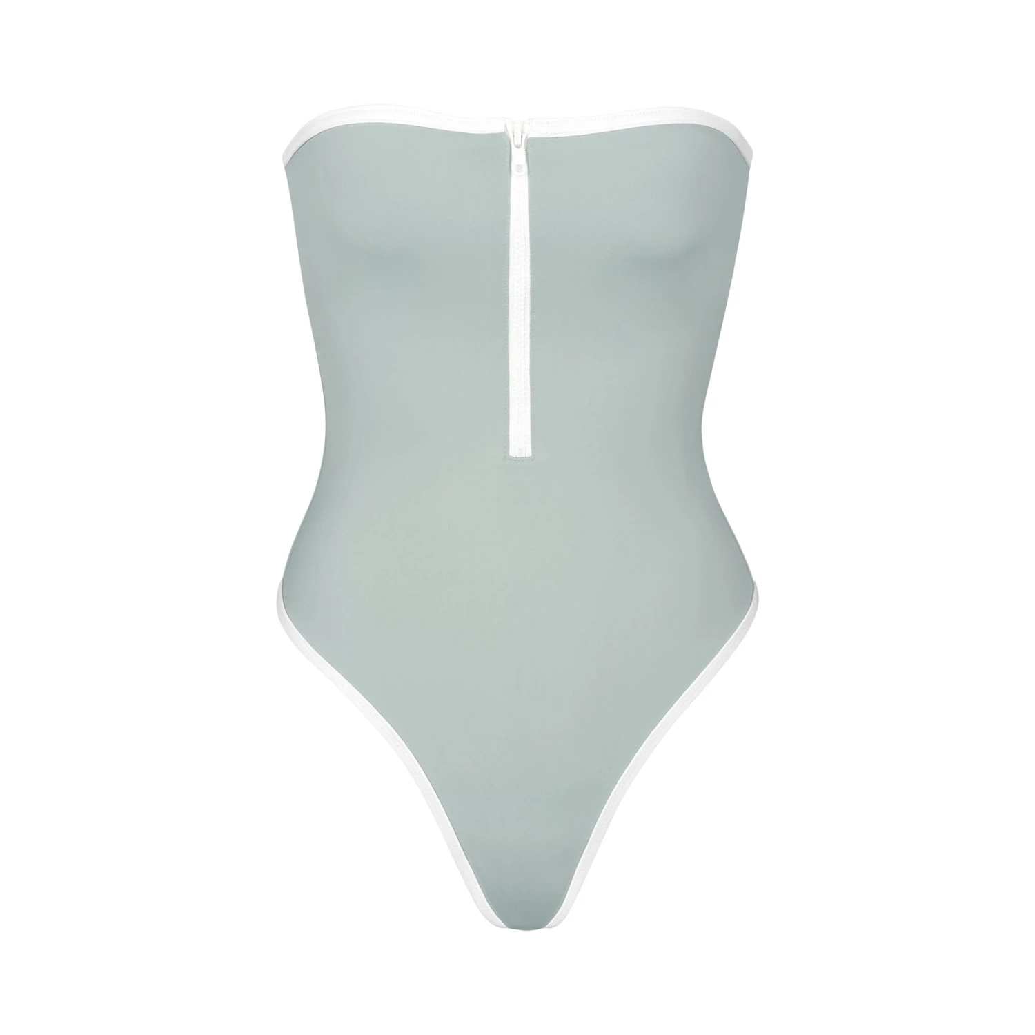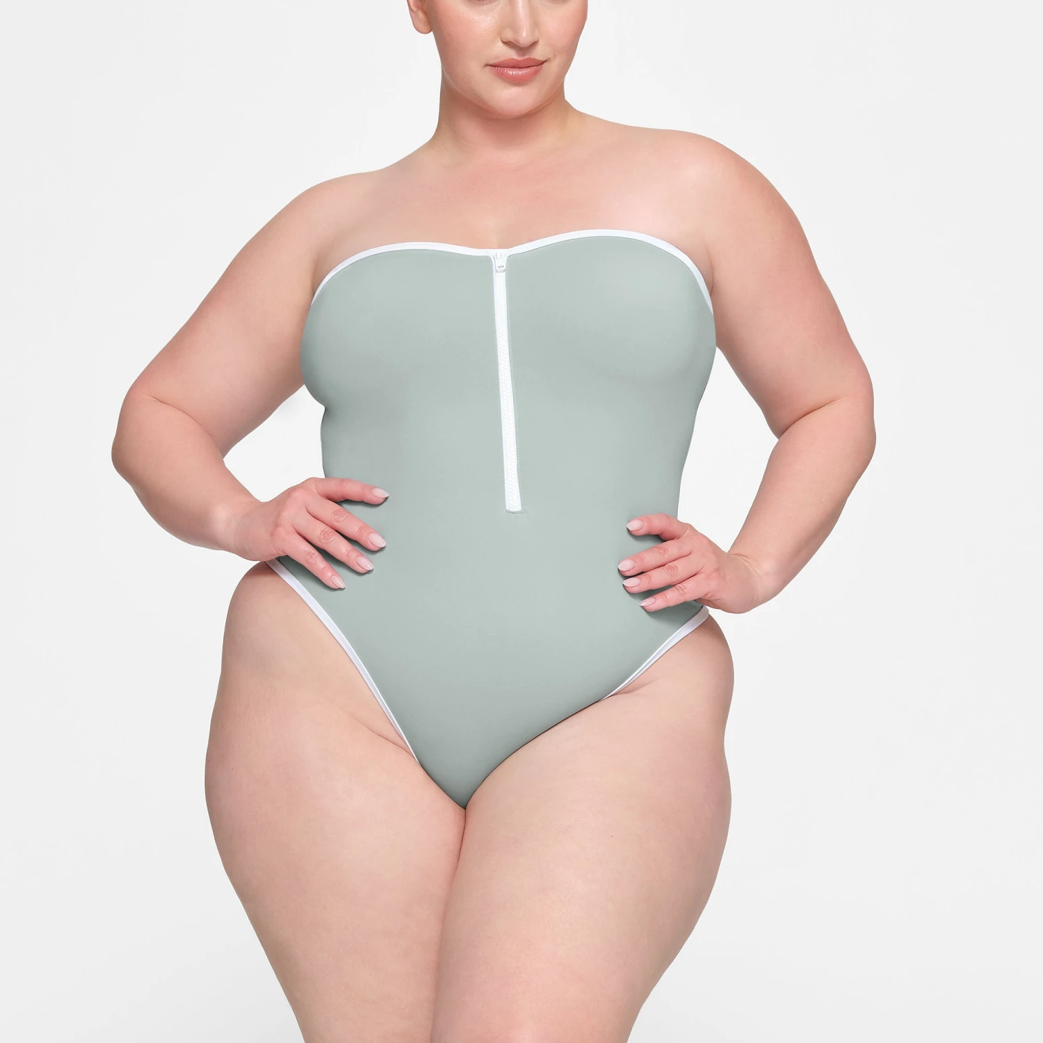 silhouette. Features a brief back with medium coverage and a center front zipper. Fits true to size.